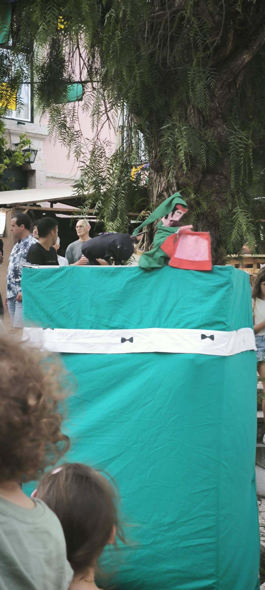 No sábado, a curiosidade dos visitantes levou muitos a pararem para assistir. Famílias inteiras reuniram-se debaixo das árvores para espreitar o pequeno palco colorido onde as figuras dos Robertos ganham vida. O som das gargalhadas foi constante – adultos e crianças divertiram-se com os bonecos irreverentes, os diálogos rápidos e as situações cómicas tão típicas deste teatro tradicional.